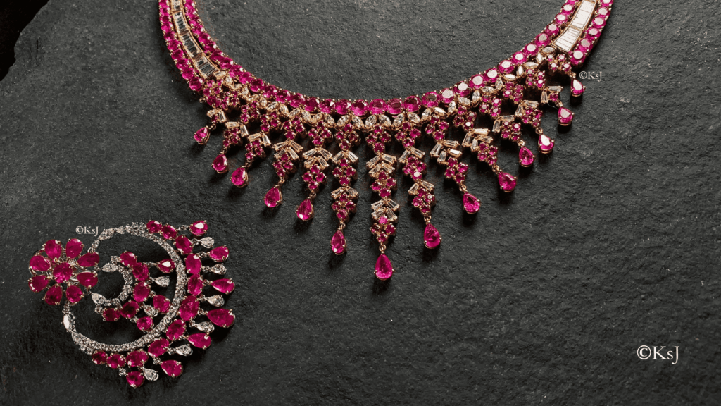 KSJ offers ruby rings, necklaces, and bespoke designs that capture individuality—making them the best Delhi jeweller for gemstone jewellery.